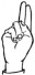 На ћирилици написано МИЛОМИРА ПЕРОВ састоји се из 13 слова [?]. Исписано ћириличном једноручном азбуком за глувонеме: